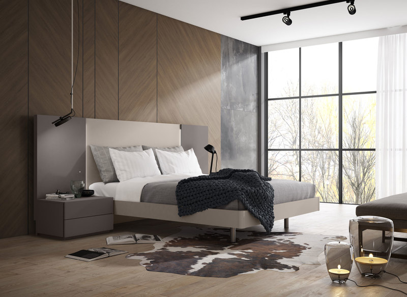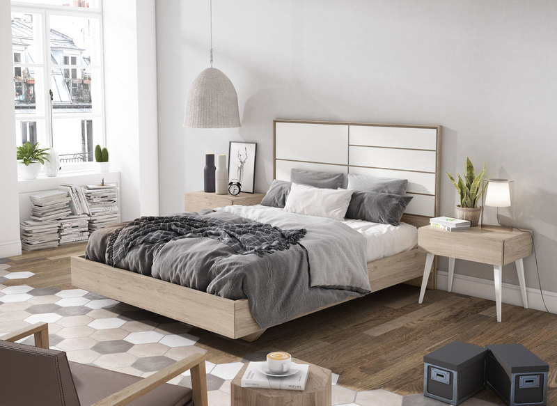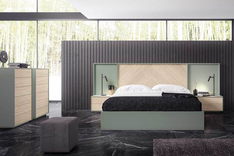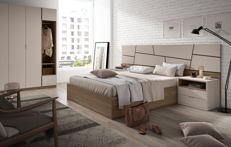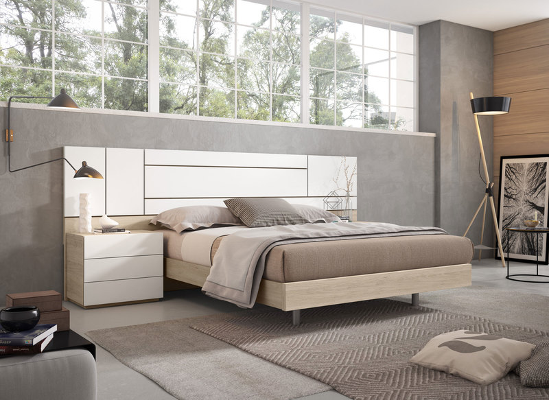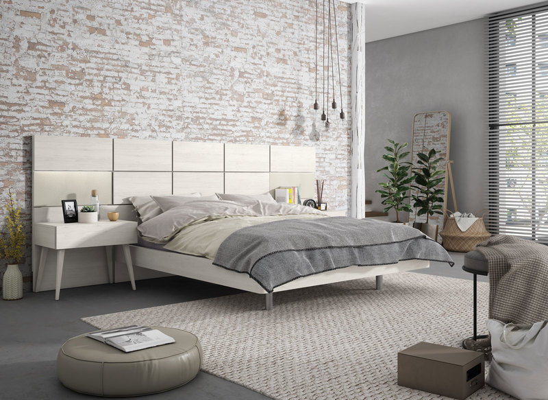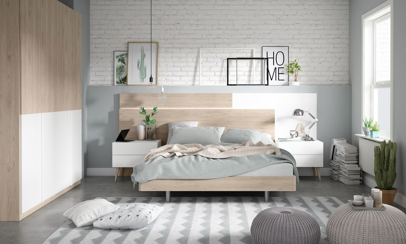 • Cabecero componible, mesitas con pata estilo nórdico