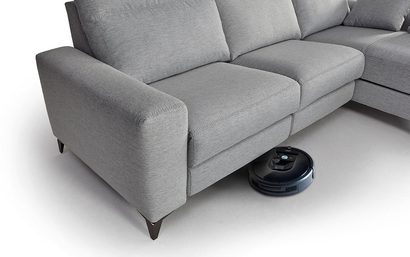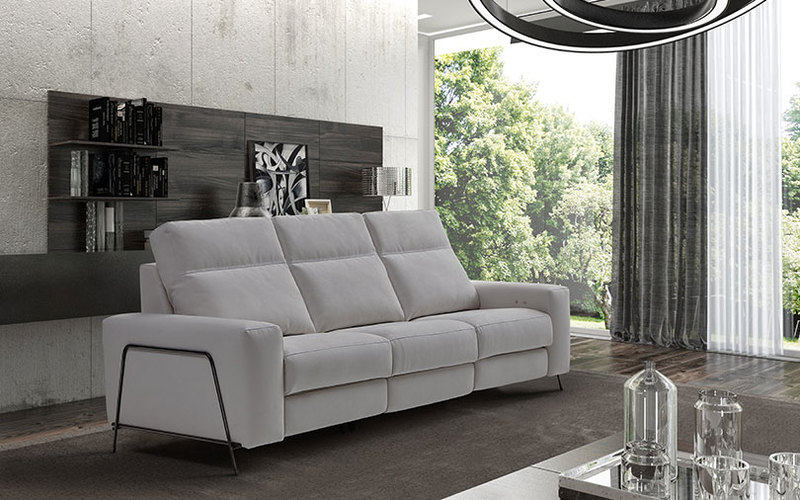 • Sofá de diseño, pata metálica, asientos motorizados.